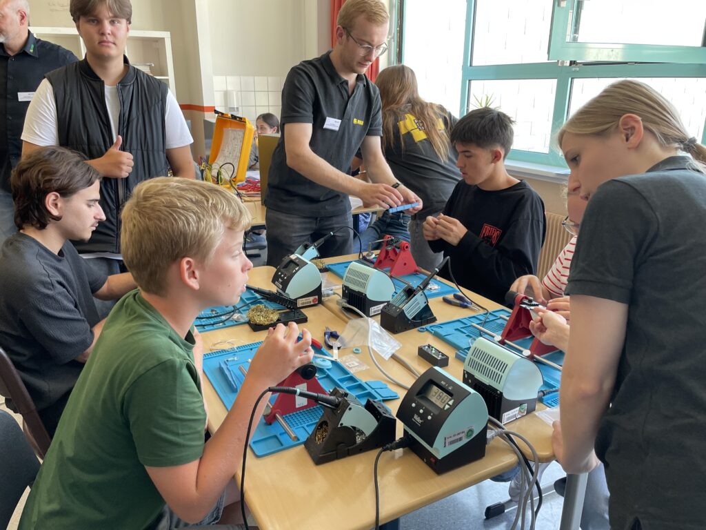 Was die Veranstaltung besonders machte: Viele Unternehmen hatten Mitmachangebote vorbereitet, die es den Jugendlichen ermöglichten, Berufe „hautnah“ zu erleben. So konnten die Teilnehmenden unter anderem eine elektrische Wasserwaage selbst bauen,